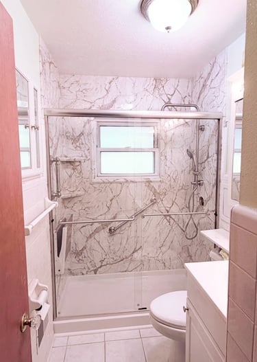 Our tub-to-shower conversions use custom acrylic systems built to fit your exact space. These quick updates are ideal for homeowners who want a low-threshold, safer shower without the cost and chaos of a full renovation. Our certified installers can often complete the job in just 1–3 days, so you'll be enjoying your new shower before you know it.