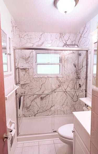 Low-entry thresholds and optional grab bars make showering simpler and reduce fall risk. Walk-in showers are ideal for seniors or anyone with limited mobility—perfect for aging-in-place.